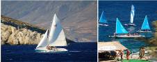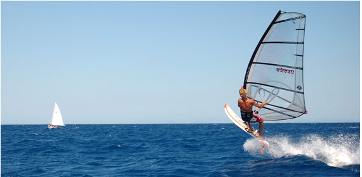 The club sits on the shoreline, 5 minutes from the villa. This is the place to sip and evening drink after a day of sailing, windsurfing, and watersports. Walk through a garden of eucalyptus, rosemary and pine trees and you'll find the Clubhouse perched on volcanic rock overlooking the Ionian Sea. The prevailing summer winds along this north-easterly coast are a watersports enthusiasts' dream. Even if you're not a sailor or windsurfer there are lots of things to do. |